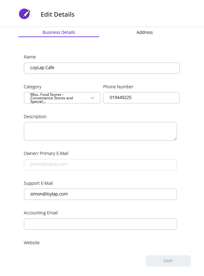 Your Business Details are displayed to customers in app and online when they use LoyLap services. Ensure your business details are up to date and accurate so your customers know how, when and where to find you.
