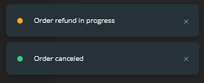 5) Once the Refund Order button is clicked you will see the prompt in the bottom left of the screen appear. This shows the process of the Order being cancelled.