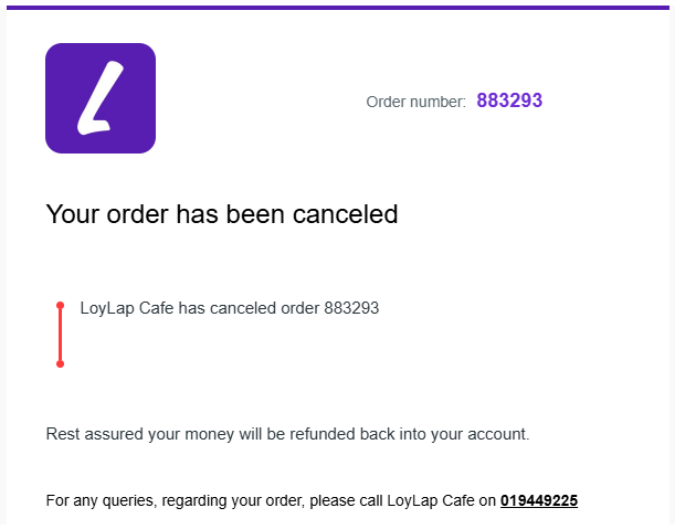 The customer will also get an email to the email address they input at the time of order / associated to their account confirming the order was cancelled.