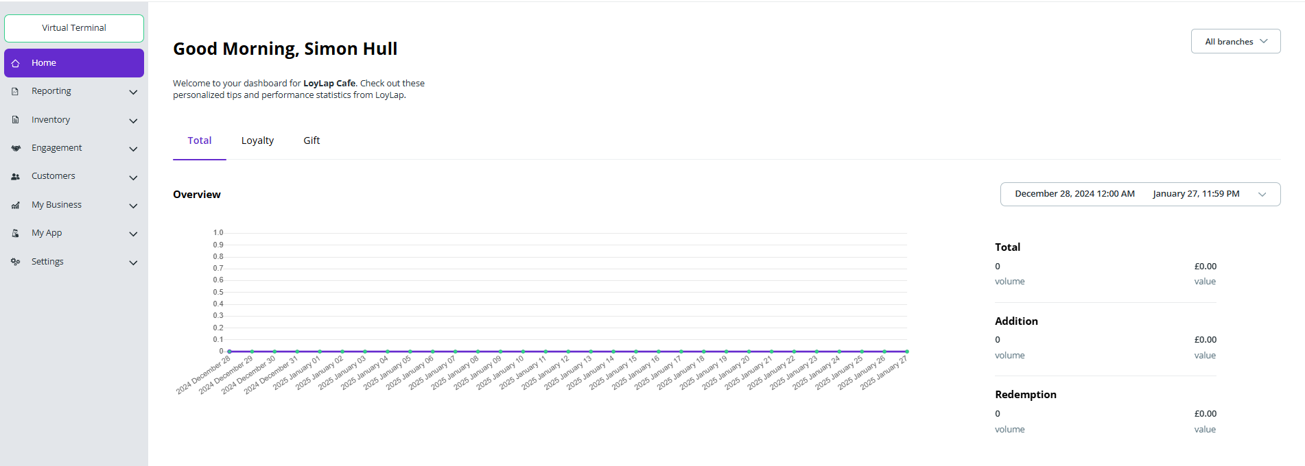 The VIRTUAL TERMINAL option will open up a new tab in your browser and log you into your merchant web app on merchant.loylap.com so you can process transactions. Read more about our merchant we app here.
