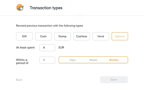 *On the transaction type page, select 'Upfront' if you would like to reward your customers for topping up their account.