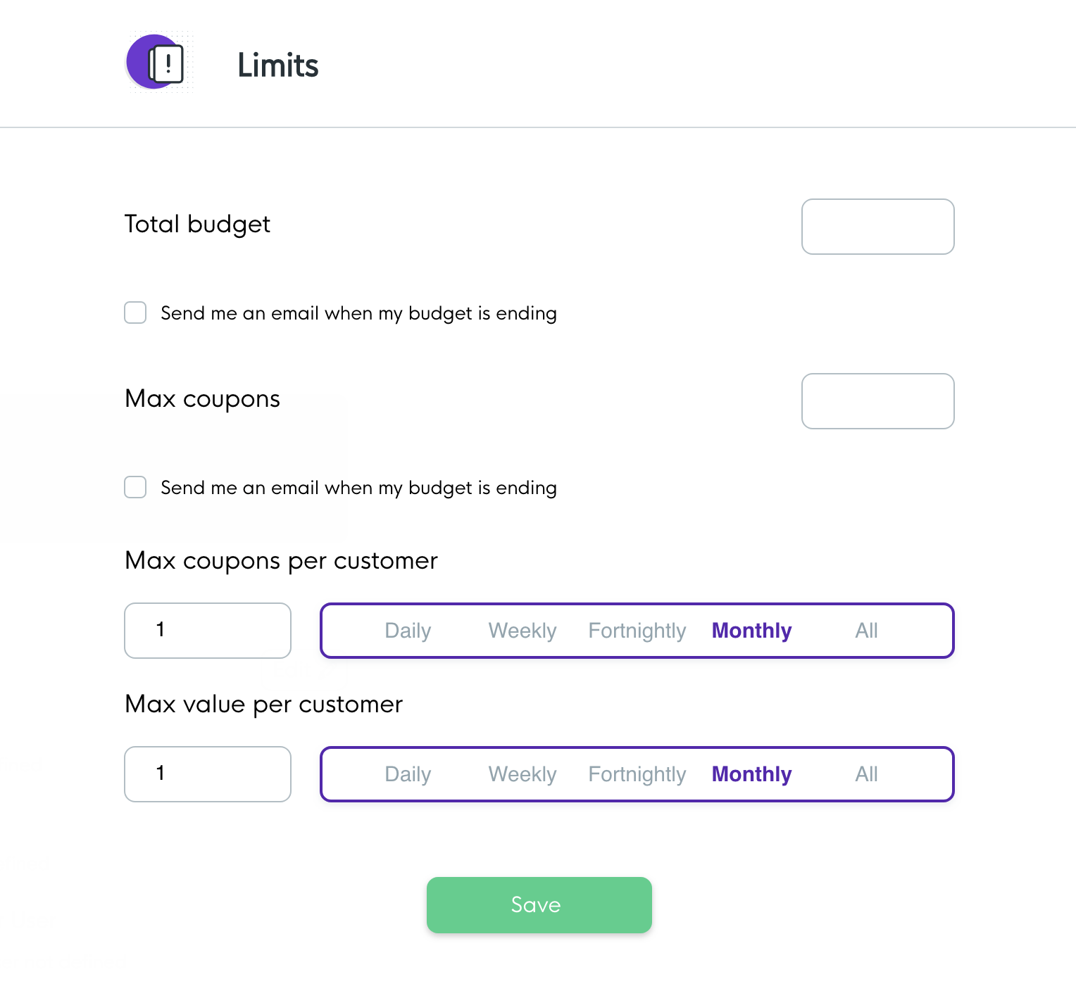 For this example, we have set the minimum top up amount to €9.00 within a Month