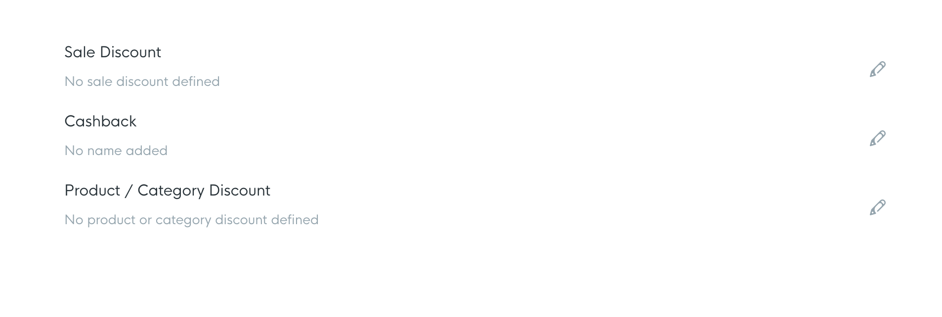 6) On the next page, click on the pencil icon beside 'Product/Category' discount.