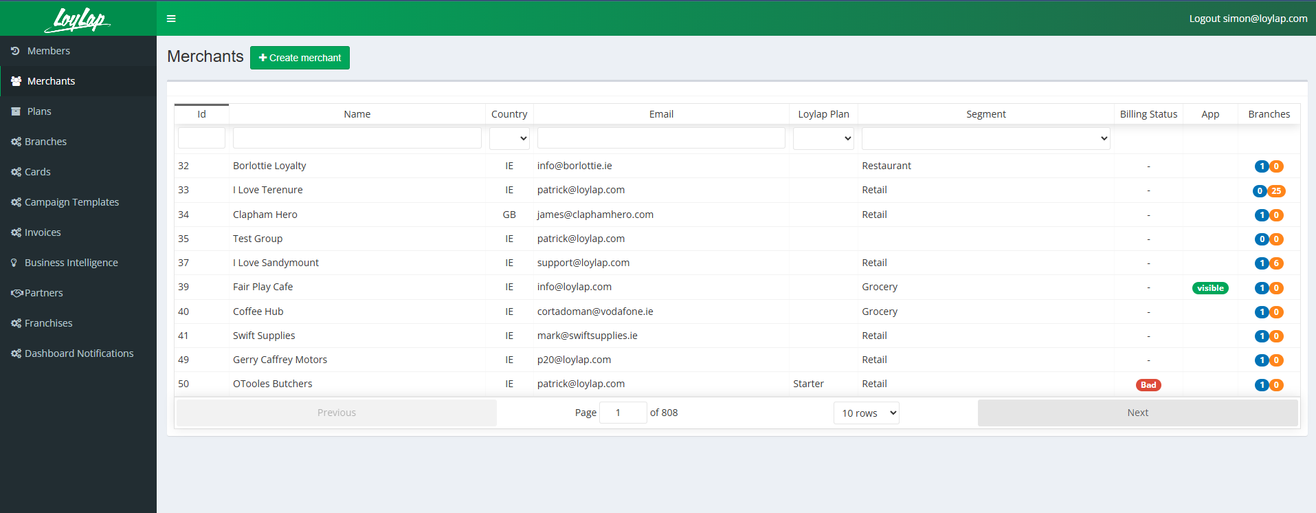 3) After you click into the merchant you'll want to head into 'Info', 'Settings' and then 'Branded app as highlighted below.