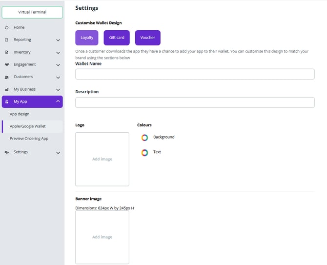 Here you can design the Apple/Google Wallet Pass for both Loyalty customers, and for those who received a digital Gift Voucher.
