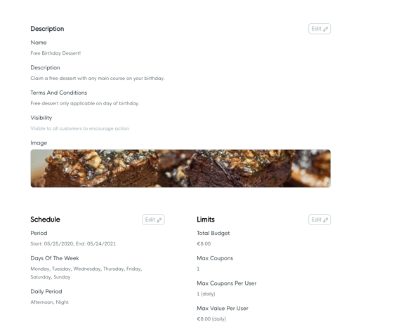 - Setting it to one 'All' will mean that the customer can only redeem the birthday reward once per year.