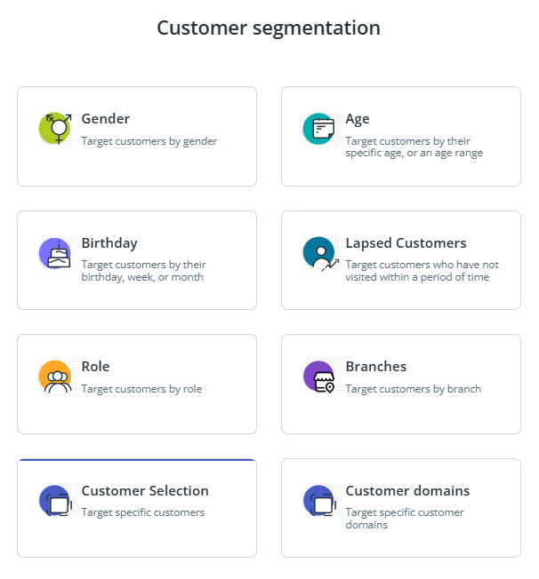 By selecting a specific group of customers, you can offer special incentives to Members, VIP customers etc that enable them to get a campaign reward tailored for them.