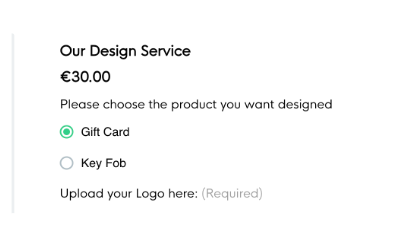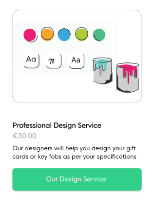 You must create a product for all the different design options available for ordering, example Key Fob, Gift Card,etc. -