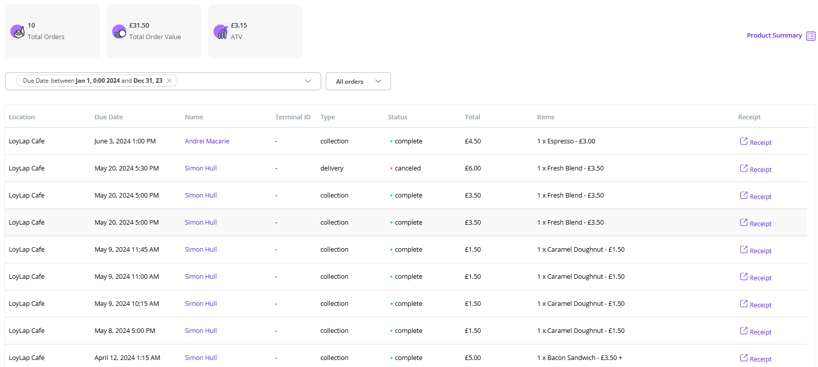 4) We can use the filters provided to search for specific Orders. We'll use the Due Date filter to show orders for 2024.