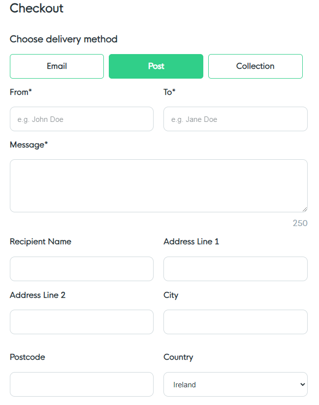 5) This should now allow the Experience Voucher to be listed for Collection & Delivery, as well as being able to be emailed to the customer. This will now show as below during the purchase process.