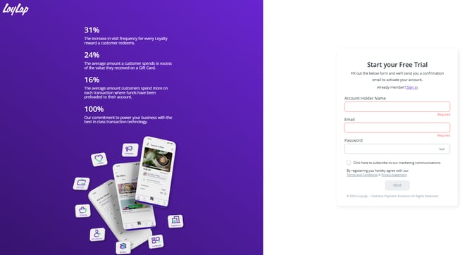 1) To sign up and start your journey with Loylap visit loylap.com to get started.