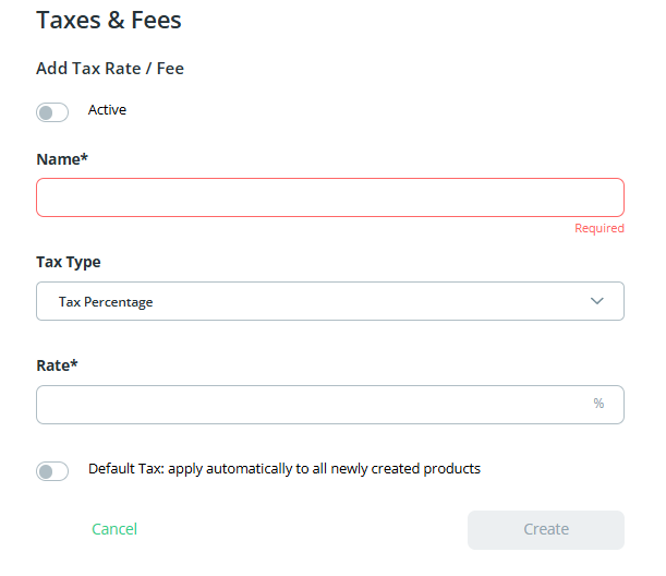 Below is an example of a 20% Tax Rate Percentage being set. Once you are happy with the input details, hit 'Create'.
