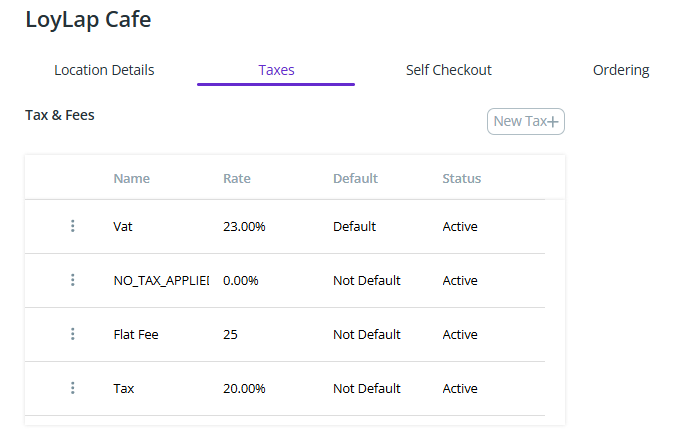 4) Then you'll be launched into the Location details for the Branch. From there you'll want to click on Taxes. Once done you'll see the below screen where there is an option to add a new Tax Rate
