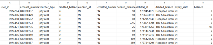 4) This will load you into the below page. The date range will be set to the month that we are currently in. Here you can see the number of the Multi Use Voucher that has been sold, if this is a Physical or Digital voucher, Amounts Debited & Credited for each Voucher in this period, the issuing location (such as a specific terminal), the date the card is due to expire and also the current balance of the card.