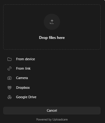 You can then choose to Drag and Drop files, upload them from your device/PC,directly from a link/URL as well as other options.