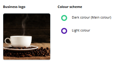 The Business Logo decides the image that appears in the top left of the landing page. Hover over this and you'll be able to click to change the image. This process is the exact same for any background images you wish to set as well as the Order Ahead banner.