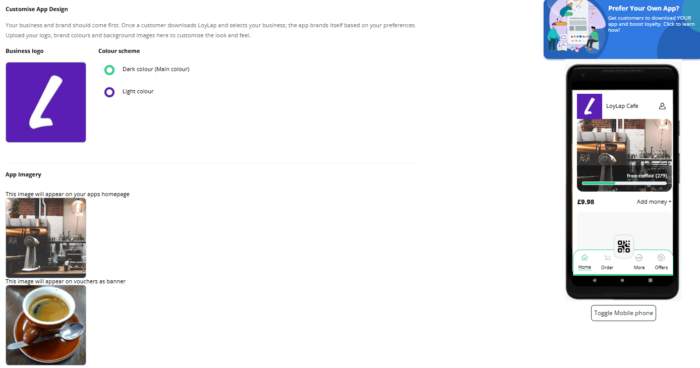 As a business you'll go through periods of re-branded and updating your image. We've made this a simple process from within your Online LoyLap Dashboard